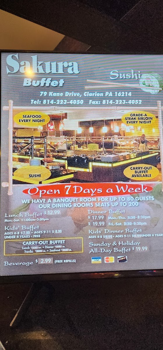 Sakura Buffet - Clarion Menu